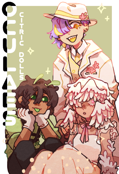 All members of Citric Dolls are of the city’s main alien species, oculaestis, or oculaes for short. They are best recognized for their vibrant jewel-like eyes and colorful blood and organs, both of which come in the same shades as citrus fruits. Their eyes are extremely sensitive to the light, but where they are lacking in sight, they make up for with their other senses. Most oculaes are pretty much identical to regular humans outside of their eyes and organs, but as with any species, there are genetic variations that lead to some oculaes differing from the norm.